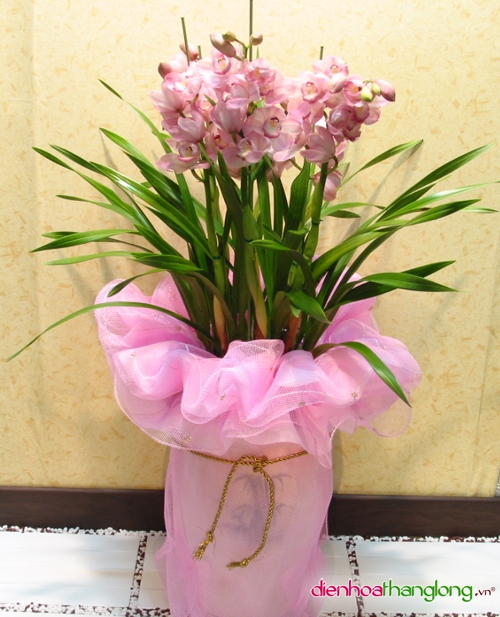 Chậu hoa bao gồm 6 cây hoa địa lan, giá trên đã bao gồm chậu sứ cao cấp